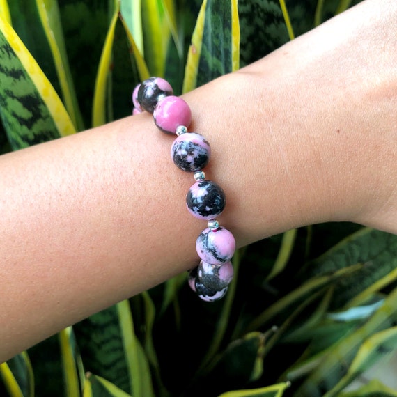 ☾ Details: Rhodonite beads in pink and ink color with 925 silver beads.❤